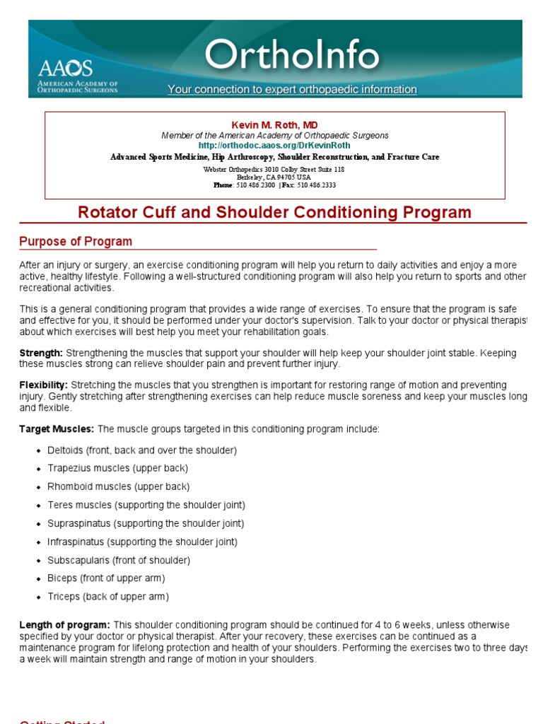 Rotator Cuff And Shoulder Conditioning Program Orthoinfo Aaos Pdf Shoulder Elbow